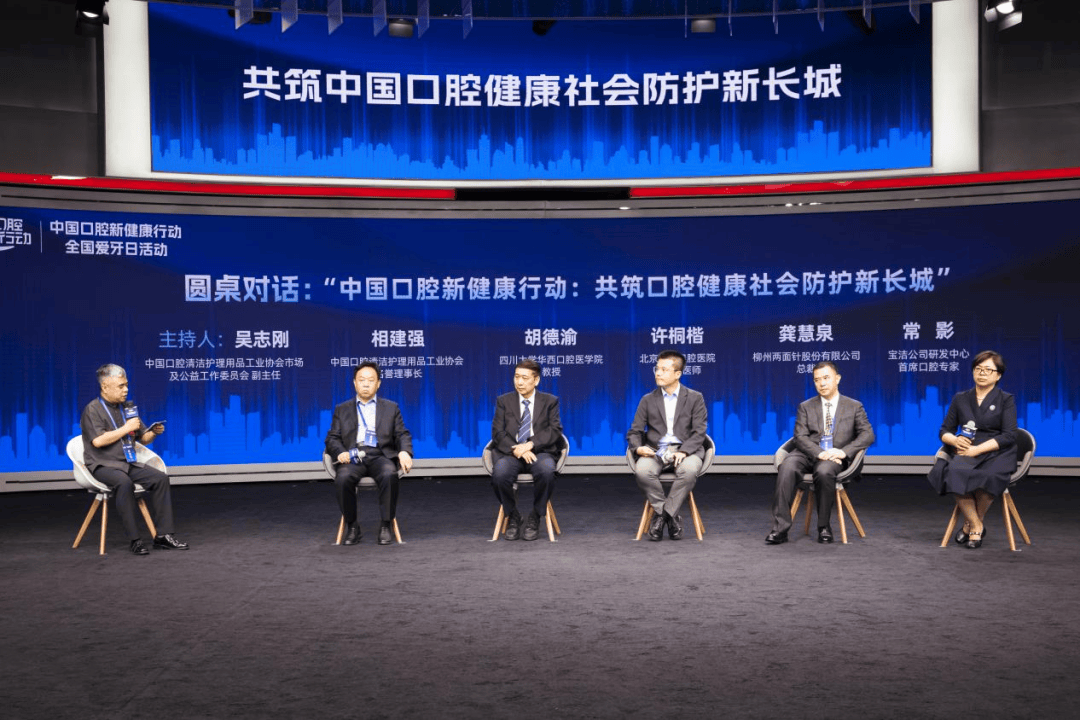 在圆桌对话环节,中国口腔清洁护理用品工业协会名誉理事长相建强、四川大学华西口腔医学院教授胡德渝、北京大学口腔医院副主任医师许桐楷、柳州两面针股份有限公司总裁龚慧泉、宝洁研发中心首席口腔专家常影一致认为,推动口腔健康事业发展需要政、产、学、研、媒、协多方协同发力。